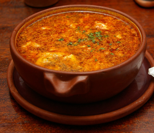 Así que uno de los platos que cuenta con ese ingrediente tan “oloroso”, es la sopa de ajo, súper nutritiva y muy adecuada, ya que no lleva carne. Simplemente hay que calentar aceite de oliva, unos dientes de ajo y un poco de sal. Se le añade pan duro en trocitos y se va removiendo hasta que se dore todo. Antes de agregar el agua o caldo de pescado, se echa pimentón rojo. Esperamos diez minutos, incorporamos a la sopa dos huevos batidos, se remueve todo a fuego lento y ya está listo.