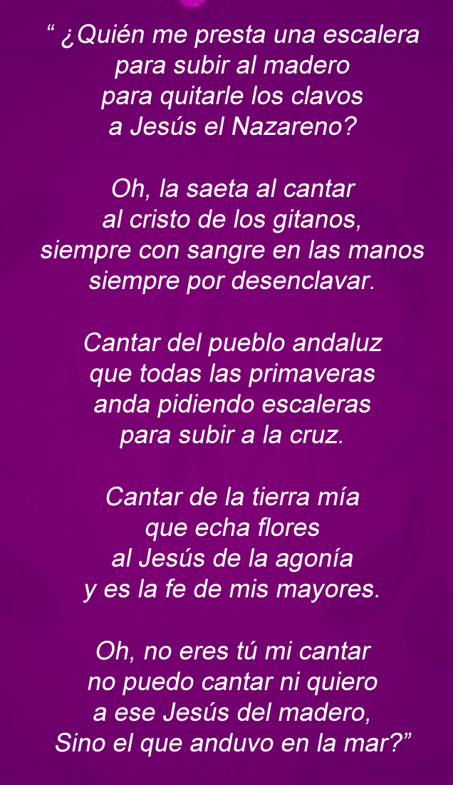 Para finalizar os regalo una preciosa saeta de un “grande”, Joan Manuel Serrat, a mí me encanta: