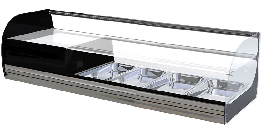 Si hablamos de comida japonesa, existen vitrina especiales para tapas sushi. Incorporan placa fría y evaporador estático, lo que evita que el producto se reseque y mantiene el grado de humedad ideal para el pescado.
